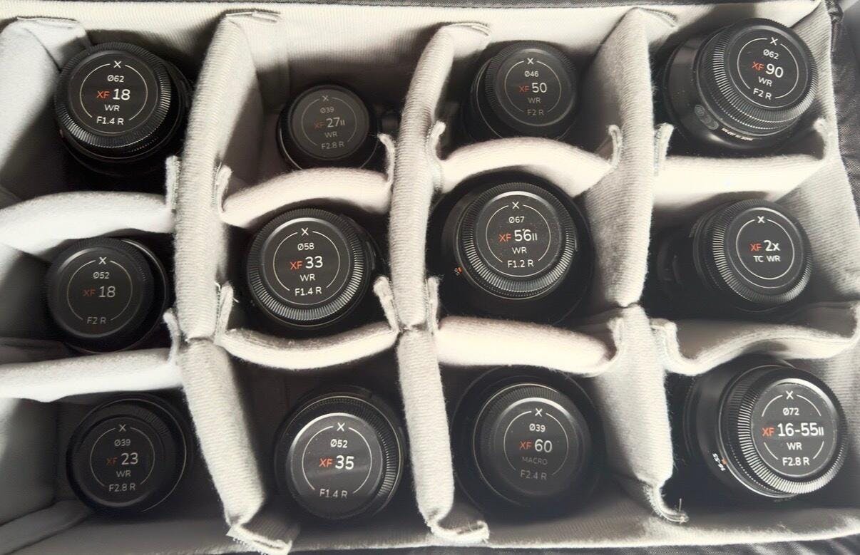 I have stickers for all my Fujifilm and Canon gear. So easy to find lenses in the bag during a shoot.