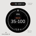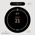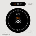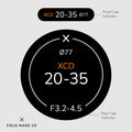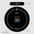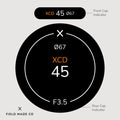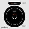 Each label, sold separately, includes a front and rear cap indicator for Hasselblad XCD lenses, displaying focal length, aperture, filter size, and lens designations. Crafted in Montreal, Canada, from durable, UV and scratch-resistant matte vinyl from North America with outdoor rated adhesive, these indicators offer lasting performance and a sleek, professional appearance.