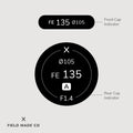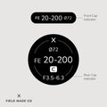Each label, sold separately, includes a front and rear cap indicator for Sigma - Sony E lenses, displaying focal length, aperture, filter size, and lens designations. Crafted in Montreal, Canada, from durable, UV and scratch-resistant matte vinyl from North America with outdoor rated adhesive, these indicators offer lasting performance and a sleek, professional appearance.
