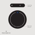 Each label, sold separately, includes a front and rear cap indicator for Zeiss Touit - Fujifilm XF lenses, displaying focal length, aperture, filter size, and lens designations. Crafted in Montreal, Canada, from durable, UV and scratch-resistant matte vinyl from North America with outdoor rated adhesive, these indicators offer lasting performance and a sleek, professional appearance.