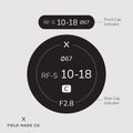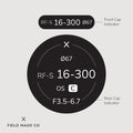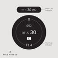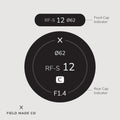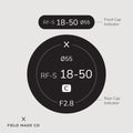 Each label, sold separately, includes a front and rear cap indicator for Sigma - Canon RF lenses, displaying focal length, aperture, filter size, and lens designations. Crafted in Montreal, Canada, from durable, UV and scratch-resistant matte vinyl from North America with outdoor rated adhesive, these indicators offer lasting performance and a sleek, professional appearance.