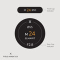 Chaque indicateur, vendu séparément, comprend un autocollant pour le capuchon avant et un autre pour le capuchon arrière des objectifs Leica M. On y retrouve la distance focale, l’ouverture, le diamètre du filtre et les désignations de l’objectif. Fabriqués à Montréal, au Canada, à partir de vinyle mat nord-américain, durable et résistant aux UV et aux éraflures, ces indicateurs adhèrent solidement grâce à un adhésif conçu pour l’extérieur, assurant performance et finition professionnelle.